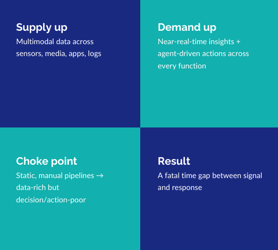The result is a pattern I see repeatedly: organizations are data rich but decision- and action-latency constrained. AI agents may look impressive in a demo, but without contextualized, governed, timely data, they are functionally blind.