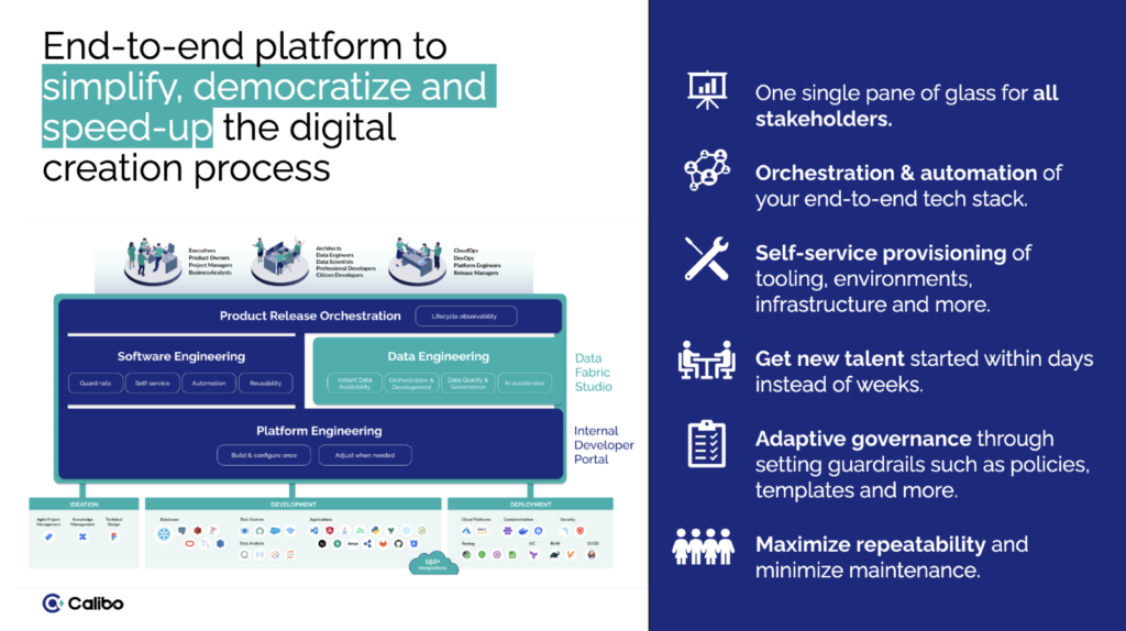 With an eye on innovation and a commitment to efficiency, Calibo empowers organizations to race towards their digital future, creating both digital and data products that deliver on their business promises.